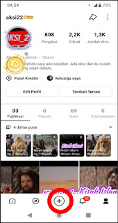 2. Lalu klik tanda + yang ada di bagian bawah dari profil snack video sobat cari dolar (perhatikan lingkaran merah di bagian bawah)